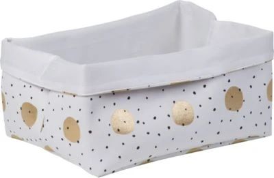 Dieser Korb aus Canvas zeigt sich in stilvollem, süßem Punktedesign und ermöglicht das schnelle Wegräumen von Spielzeug und weiteren Dingen. Die Box findet aufgrund ihrer Größe auch im Schrank oder Wandregal Platz.