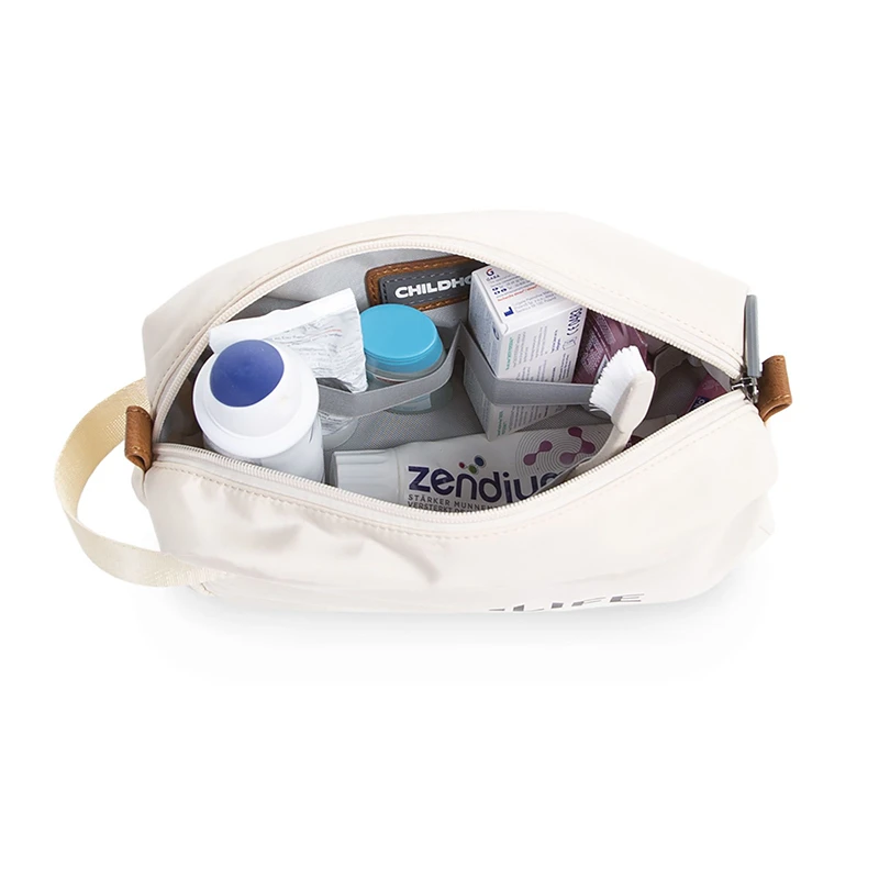Do you also like to travel with the kids? And do you need a practical, but also a beautiful looking bag for all your care items? Meet our awesome Momlife toiletry bag! Ideal for all sweet and trendy mommies. The toiletry bag in off white has compact dimensions, but certainly provides enough storage space to neatly put away all care items.