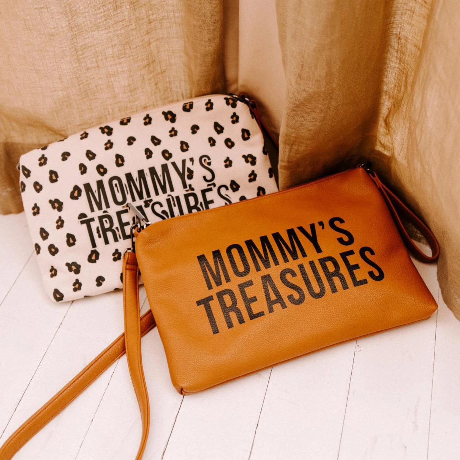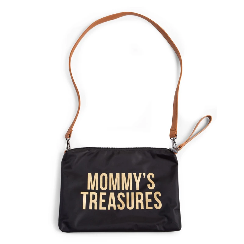 Our popular Mommy Bag has become a must have for new and expecting moms all over the world. The Mommy Bag now has a little sister: the clutch for Mommy’s Treasures. It will hold all your personal stuff in the small bag. Put the clutch in the diaper bag for a day out with the entire family and take it out at night for a dinner date with friends. The Mommy’s Treasures clutch has a wrist band and a removable shoulder strap.