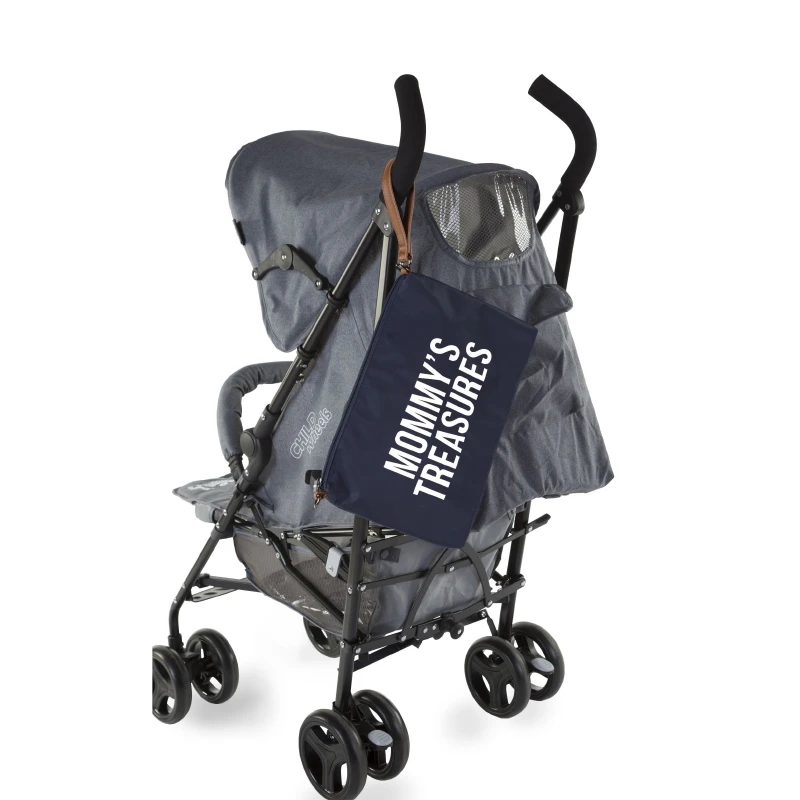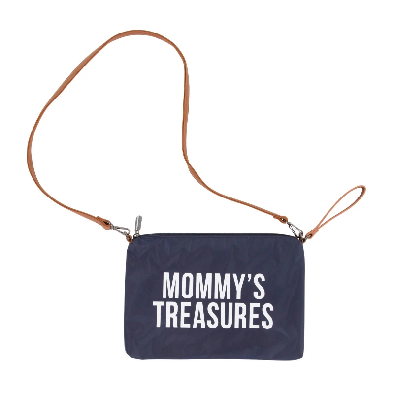 Our popular Mommy Bag has become a must have for new and expecting moms all over the world. The Mommy Bag now has a little sister: the clutch for Mommy’s Treasures. It will hold all your personal stuff in the small bag. Put the clutch in the diaper bag for a day out with the entire family and take it out at night for a dinner date with friends. The Mommy’s Treasures clutch has a wrist band and a removable shoulder strap.
