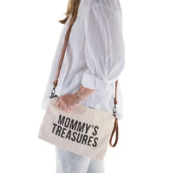Our popular Mommy Bag has become a must have for new and expecting moms all over the world. The Mommy Bag now has a little sister: the clutch for Mommy’s Treasures. It will hold all your personal stuff in the small bag. Put the clutch in the diaper bag for a day out with the entire family and take it out at night for a dinner date with friends. The Mommy’s Treasures clutch has a wrist band and a removable shoulder strap.