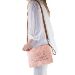 Our popular Mommy Bag has become a must have for new and expecting moms all over the world. The Mommy Bag now has a little sister: the clutch for Mommy’s Treasures. It will hold all your personal stuff in the small bag. Put the clutch in the diaper bag for a day out with the entire family and take it out at night for a dinner date with friends. The Mommy’s Treasures clutch has a wrist band and a removable shoulder strap.