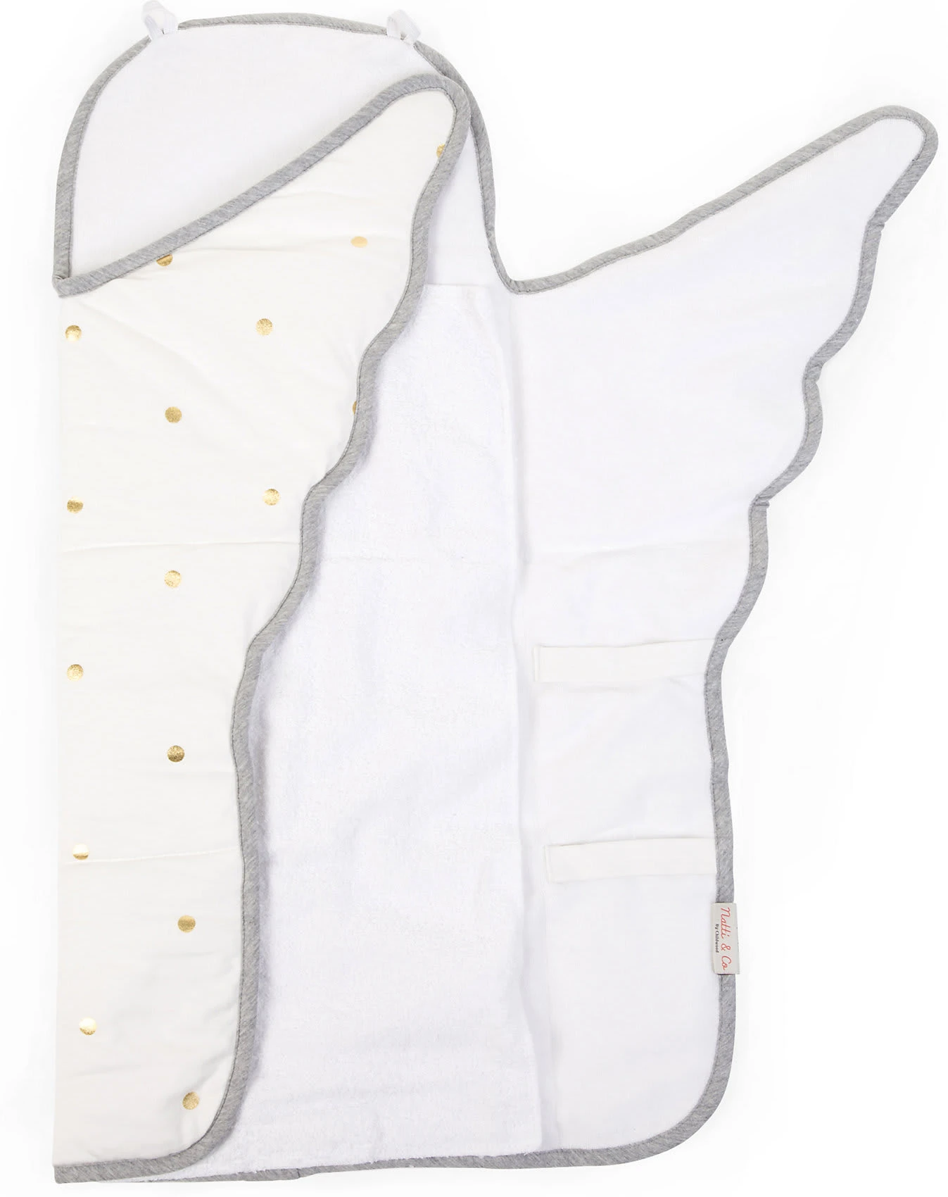 Diese Reise-Wickelauflage ist in Form eines Engels gestaltet und sorgt somit für eine entzückende Optik, wenn Ihr Baby darauf liegt. Die Auflage aus angenehmem Baumwolljersey ist sehr praktisch für unterwegs, da sie ganz einfach zusammengeklappt werden kann.