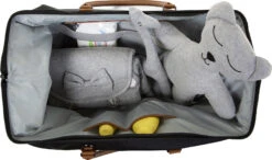 Die Mommy Bag von Childhome setzt auf ein modisches Design und jede Menge Stauraum. Dank ihres Volumens von 58 Litern leistet sie auch als Krankenhaus-, Reisetasche oder Weekender gute Dienste. Wickeltasche Mommy Bag von Childhome inkl. wasserdichter Wickelmatte 1 Reißverschluss-Hauptfach mit 2 Steckfächern, 1 Reißverschlussfach, 1 Isolierfach und 1 Befestigungsschlaufe, Trolley-Aufsatz 2 Henkel, abnehm- und längenverstellbarer Schultergurt 55(L) x 30(B) x 40(H) cm, 58 l, belastbar bis 5 kg 1,5 kg aus wasserabweisendem Textil Die Childhome-Wickeltasche lässt auf den ersten Blick erkennen, dass es sich bei ihr um eine waschechte Mommy Bag handelt. Der modische, das Design prägende Print lässt keinen Zweifel und auch die durchdachte Aufteilung verleiht dem Modell Familientauglichkeit. Der Reißverschluss der Tasche lässt sich weit öffnen und gibt den Blick auf den gesamten Inhalt der Tasche frei. Vom Lätzchen über die zum Lieferumfang gehörende, wasserdichte Wickelunterlage bis zum Spielzeug findet hier alles einen Platz. Kleinigkeiten sind in den Steckfächern oder dem Reißverschlussfach sicher verwahrt. Getränke können in dem kleinen Isolierfach untergebracht werden. Eine Befestigungsschlaufe steht für alles bereit, was schnell griffbereit sein muss. Die bis zu fünf Kilogramm belastbare Tasche kann an den zwei Henkeln oder an dem längenverstellbaren Schultergurt getragen werden. Ein Trolley-Aufsatz an der Rückseite erlaubt es außerdem, die Bag an der Teleskopstange eines Koffers zu befestigen. Hinweis Um Verschleiß zu vermeiden, verzichte nach Möglichkeit darauf, die Tasche auf eine raue Oberfläche zu stellen.